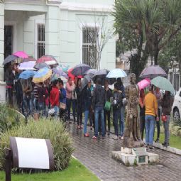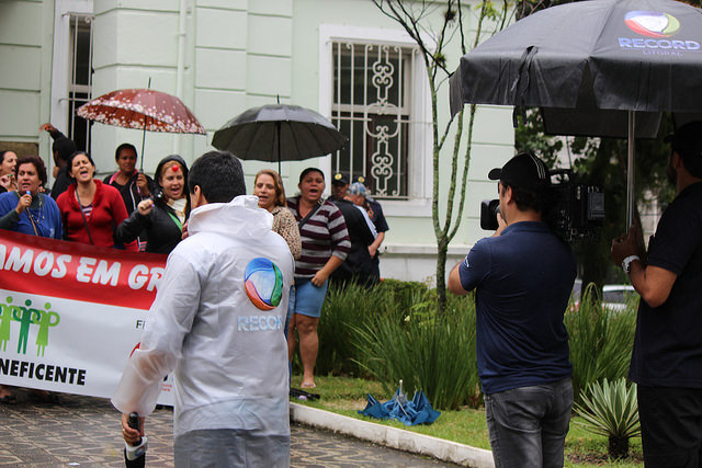 Manifestação aconteceu em frente à Prefeitura da cidade, na quarta-feira, 24 de junho de 2015. Salários de maio e junho de empregados não foram pagos.